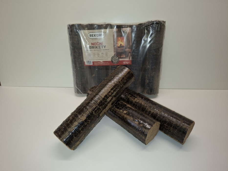Válcové noční brikety REKORD. Průměr cca 7,8cm a délkou do 30cm.